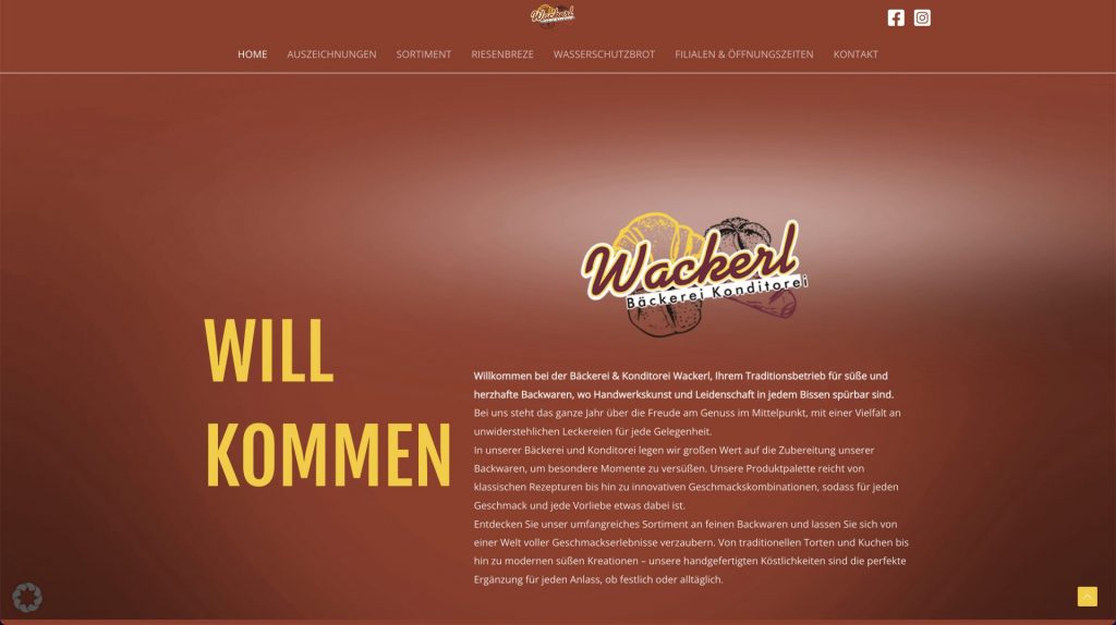 Für die Bäckerei Wackerl wurde ein warmes, einladendes Webdesign umgesetzt, das traditionelles Bäckerhandwerk und moderne Benutzerfreundlichkeit miteinander verbindet. Große, stimmungsvolle Bilder von Backwaren und dem Team vermitteln Authentizität und Qualität. Die Seite ist klar strukturiert: Öffnungszeiten, Standorte und Angebote sind schnell erreichbar. Die Farbgestaltung ist natürlich und appetitanregend, passend zur handwerklichen Ausrichtung. Die Website ist vollständig responsiv, suchmaschinenoptimiert und einfach zu pflegen – ein digitaler Auftritt, der genau so schmeckt, wie er aussieht.