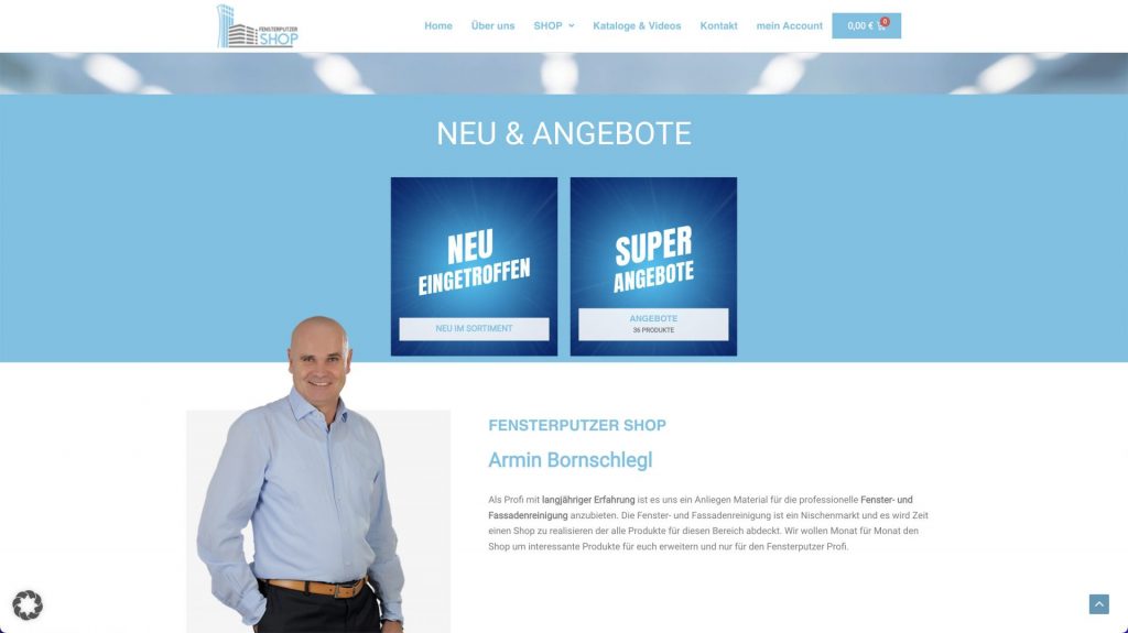 Für fensterputzer.shop wurde ein modernes und conversionstarkes Webdesign realisiert, das durch Klarheit und Funktionalität überzeugt. Die Gestaltung in frischen Blau- und Weißtönen vermittelt Sauberkeit und Vertrauen. Neben klassischen Informationsseiten bietet die Website einen vollständig integrierten Webshop, über den Reinigungsprodukte direkt bestellt werden können – benutzerfreundlich und sicher. Große Bilder, strukturierte Inhalte und eine einfache Navigation sorgen für ein angenehmes Nutzererlebnis auf allen Geräten. Die Seite ist responsiv, SEO-optimiert und bietet Kunden einen echten Mehrwert – digital glänzen war nie einfacher.